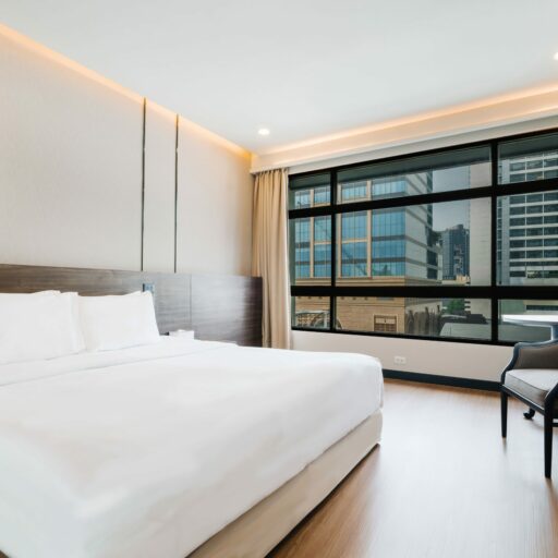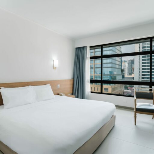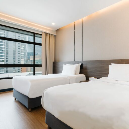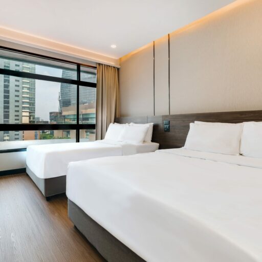 Whether you’re traveling with a friend or attending a business seminar in Bangkok, this room is designed just for you. Modern décor with upgraded wallpaper, a premium headboard, and cozy strip lighting creates a stylish yet relaxing ambiance. Enjoy a 43-inch Smart TV with Netflix and take in the stunning view of One Bangkok from your window. With two separate twin beds, it’s the ideal choice for colleagues or travel buddies who want to stay together while keeping their own space